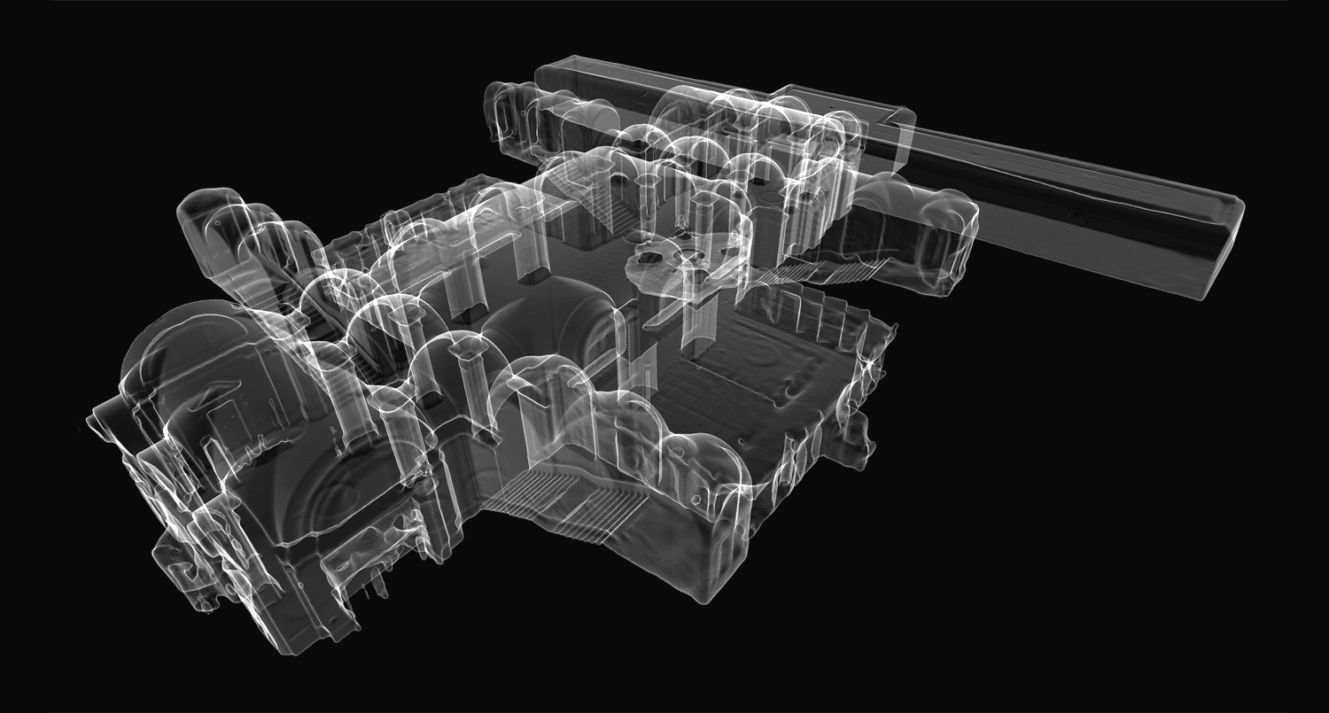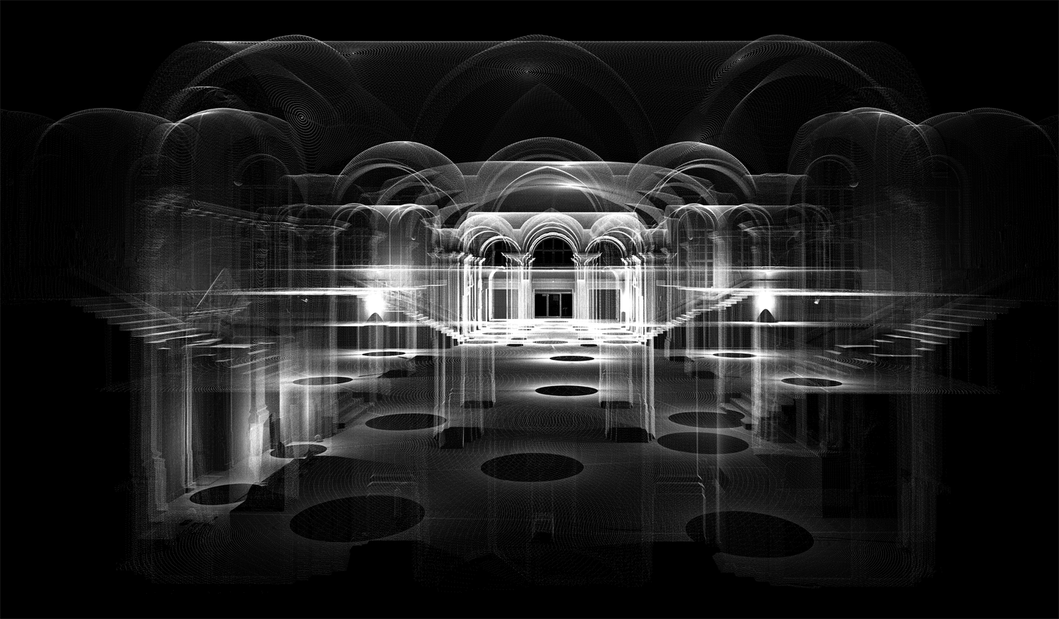 In Kooperation mit der Berliner Firma Plan3D GmbH wurde ein detaillierter 3D-Scan (∅ 0,3 cm Auflösung) der Geometrie der gesamten Haupthalle der Universität der Künste in der Berliner Hardenbergstraße erstellt. Mit dem FARO Focus 3D-Scanner (FARO Europe GmbH) wurden 33 Einzelscans erzeugt, die durch Kalibrierung und Registrierung in der Software FARO Scene in eine 885 Millionen Punkte umfassende, kolorierte Punktwolke zusammengefasst wurden. Auf Grundlage dieser Daten wurden mit der Software PointCab (PointCab GmbH) Grundriss- und Schnittdarstellungen erzeugt, die der Rekonstruktion eines idealisierten 3D-Modells in der NURBS-Modellierungssoftware Rhinoceros 3D (Robert McNeel & Associates) dienten.